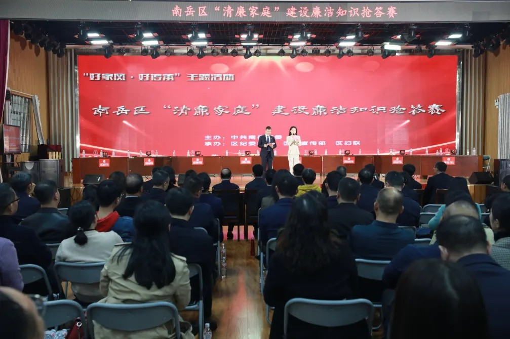 南岳区举办“清廉家庭”建设廉洁知识抢答赛,以学习《中国共产党纪律处分条例》等党纪法规条例为重点,强化领导干部及其家属纪律意识、规矩意识,以纯正家风促进良好党风,以优良作风涵养廉洁家风。