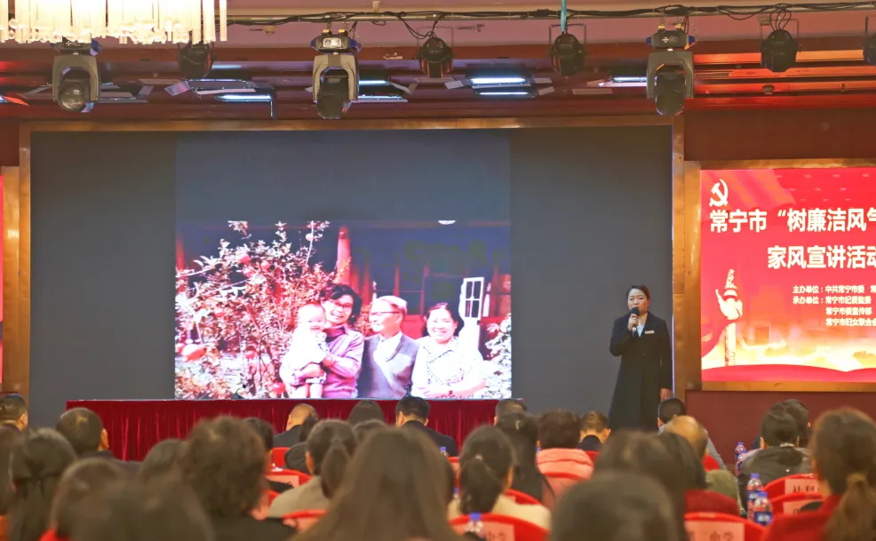 常宁市举办“树廉洁风气创清廉家庭”家风宣讲活动,市直单位、乡镇(街道)党政“一把手”配偶齐聚一堂,观看警示教育片、聆听常宁清廉家风故事。