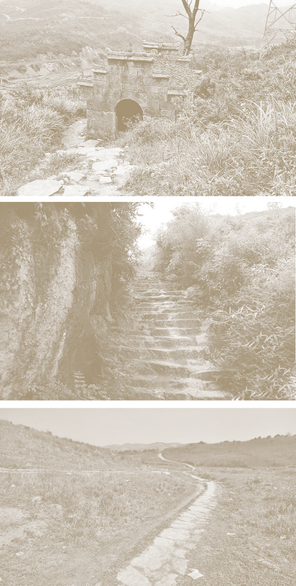 ▲桂阳太守卫飒组织民夫开凿的西京古道。上图为西京古道广东韶关段,中图、下图为西京古道湖南郴州段、耒阳段。
