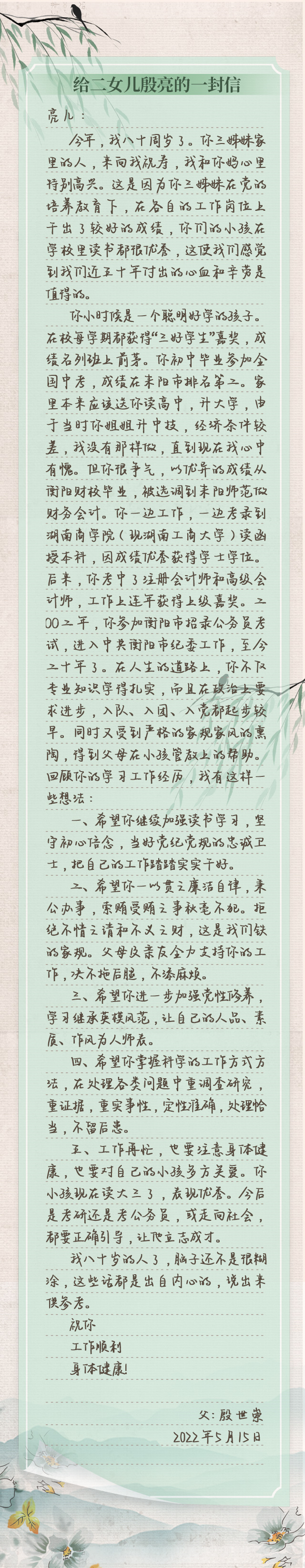 书记评家书⑥|评殷亮同志家书:好的家风看不见摸不着,却渗透于骨髓中