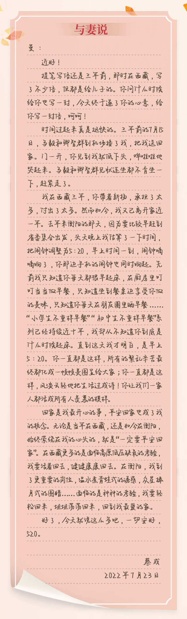 书记评家书①|评蔡成同志廉洁家书:最深刻的爱是廉洁自守、平安归来-凯发棋牌