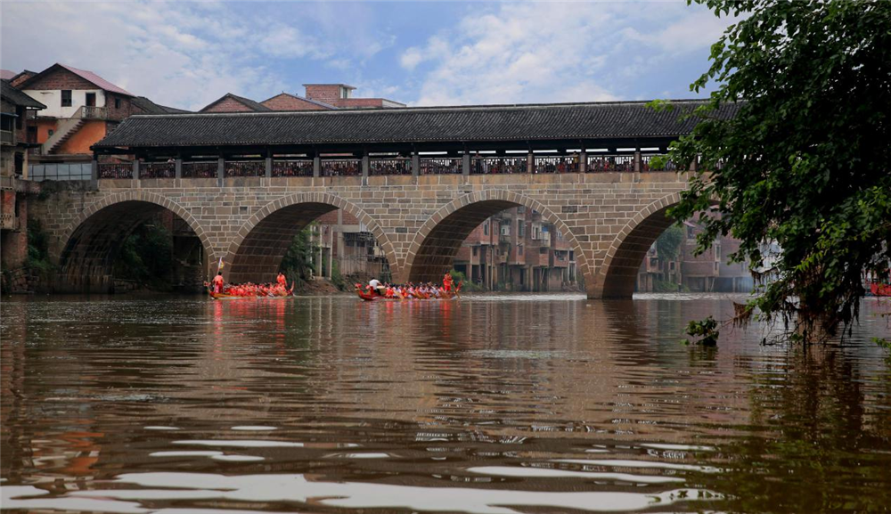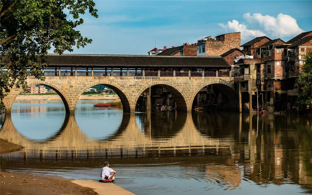 归阳镇是千年古镇,距今有1800年历史,素有“金归阳”之称。青、白二河交汇于此,山青水秀,风景如画,自古为“两祁”商贾交通之要地,是湘江中游的一颗璀璨明珠。图为重建于清同治年间的五孔石拱状元桥。(祁东县归阳镇 肖高礼 摄)