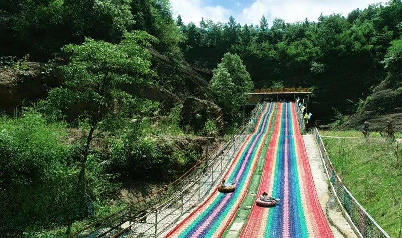 从七彩滑道的顶端一跃而下,在滑道上飞驰,超刺激的滑行和旋转,让你在这里嗨到尖叫。