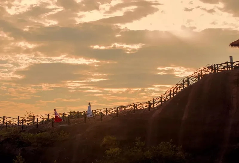 “红霞散天外,掩映夕阳时”。太阳将落未落之际的天空被染成五颜六色,五彩的云朵映衬着令人陶醉。