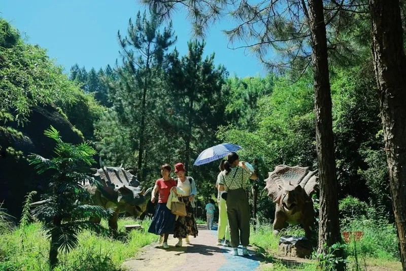园区到处是形态各异的恐龙,有着远古侏罗纪时代的神秘色彩。