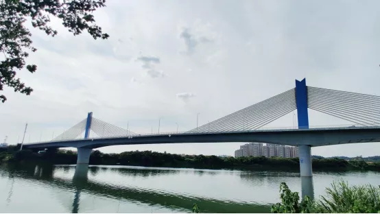 耒水大桥整齐有序的60根钢柱和两个桥墩,撑起了整个桥面,犹如两只展开翅膀的蜻蜓屹立在水面,把耒水湾东西两边的居民紧密联系起来。
